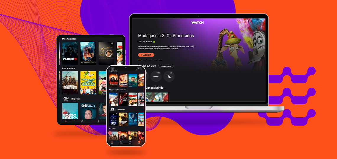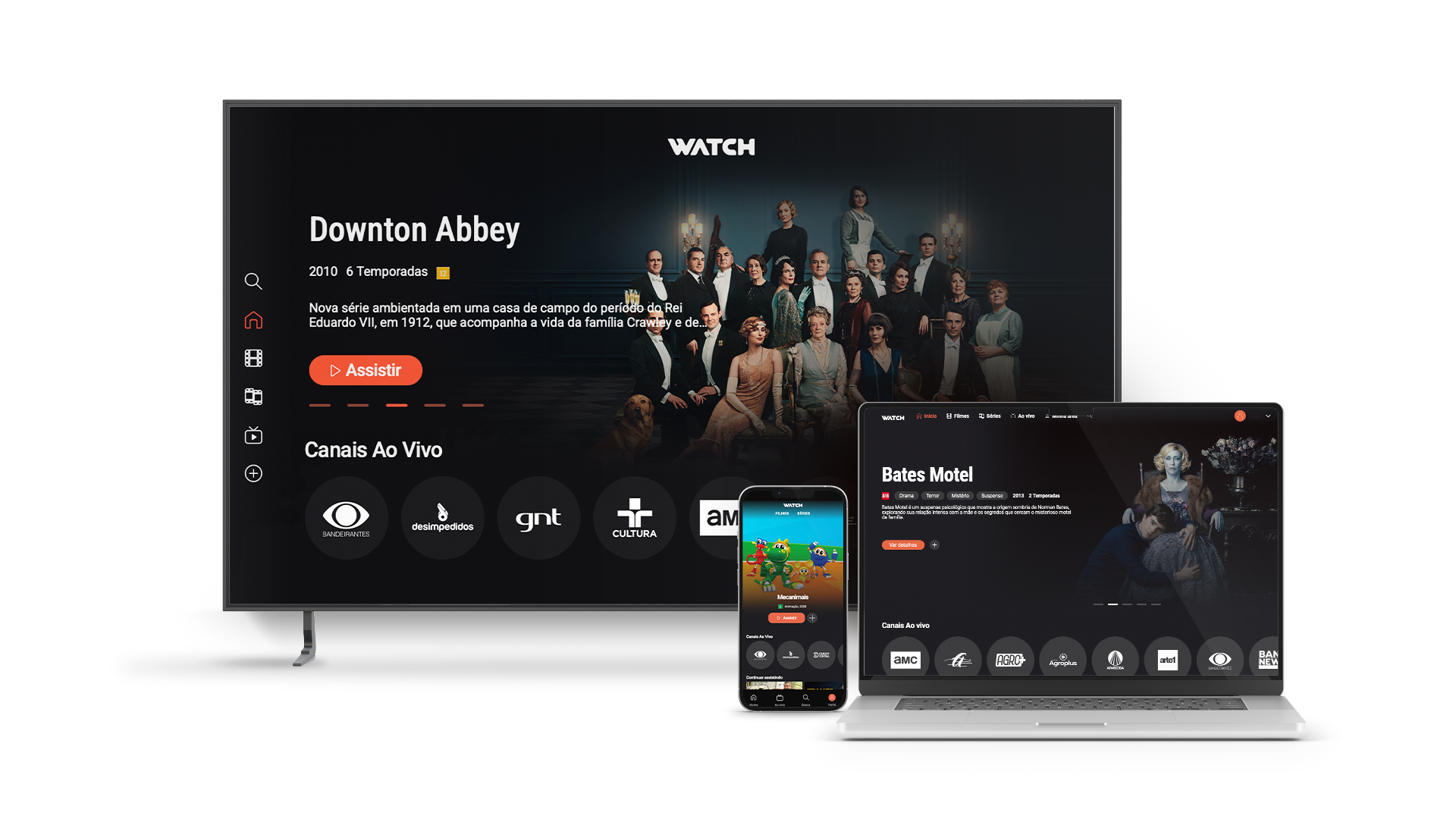 Acesse o app Watch pelo aplicativo mobile, disponível para Android e iOS, ou pelo navegador em tablets, computadores e notebooks pelo endereço play.watch.tv.br. A plataforma também é compatível com Smart TVs da Samsung, LG, Android TV (Sony, Philco, TCL, AOC).