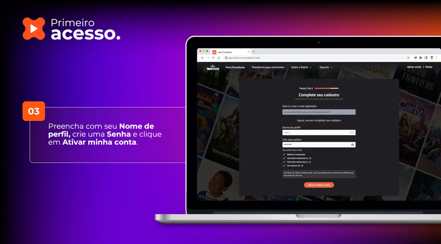 A partir de agora, você vai conferir como acessar pela primeira vez a melhor plataforma de streaming do Brasil. Antes de iniciar a sua jornada com a gente e ter acesso à programação incrível dos nossos estúdios e canais, você precisa ser assinante de um provedor de internet parceiro da Watch Brasil.